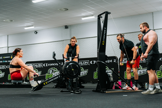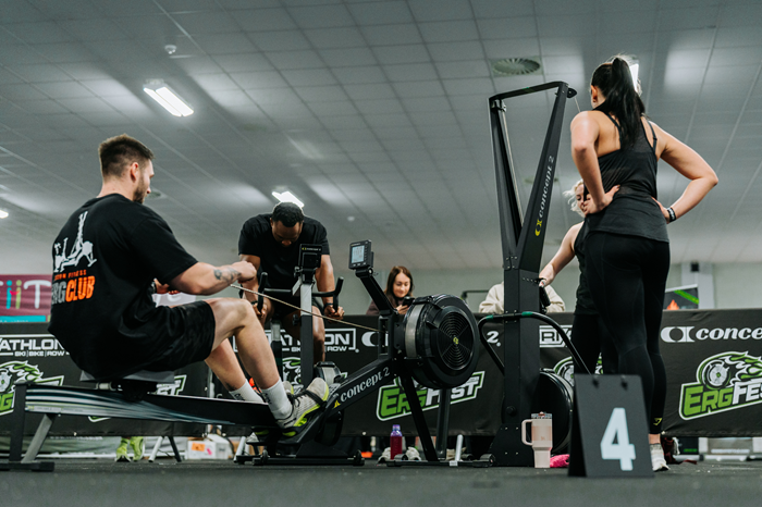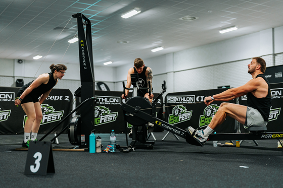 Each Tribe must generate calories for 40 minutes across all three Concept2 machines — Ski → Bike → Row handing over seamlessly between teammates to keep the pace relentless.
